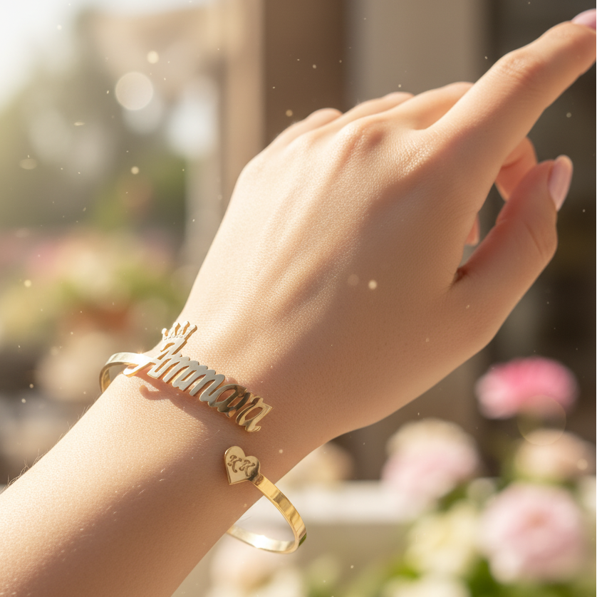 Personalized Gold Adjustable Name Bangle – A Timeless Symbol of Love & Elegance ✨