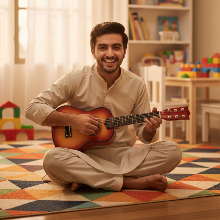 The MelodyCraft Junior Acoustic Guitar in Sunburst finish is a perfect starter instrument for young musicians. With its durable wooden body, smooth strings, and realistic sound, it inspires creativity and a love for music from an early age.